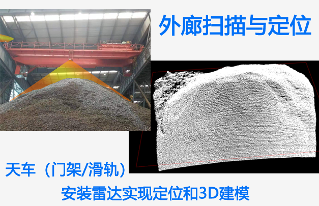 自動(dòng)定位車輛位置,智能識(shí)別車廂邊界;實(shí)時(shí)掃描物料外廓,指引天車自動(dòng)作業(yè)。